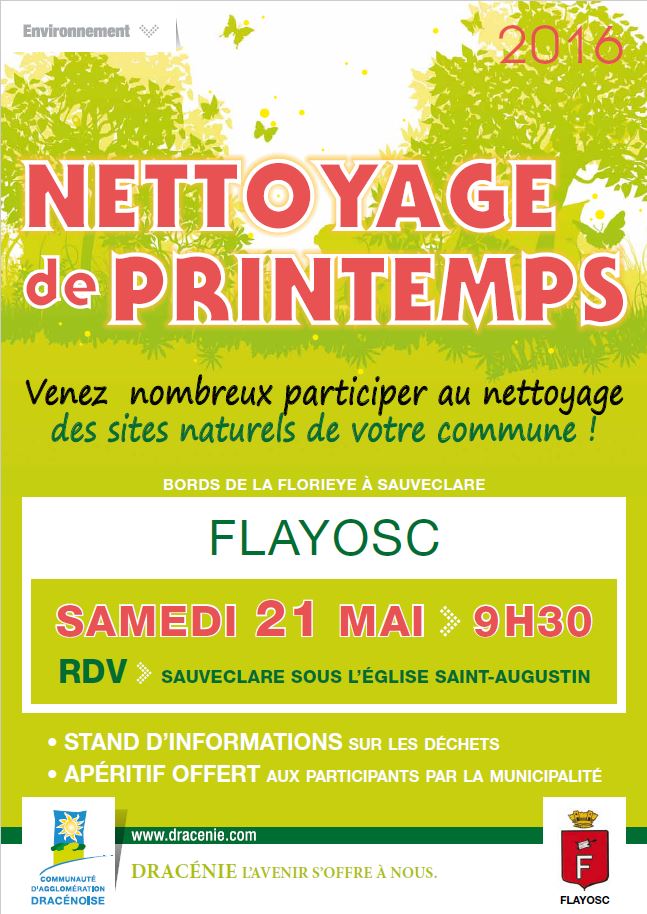 Le maire de Flayosc invite ses administrés à participer à la Journée de nettoyage de printemps :