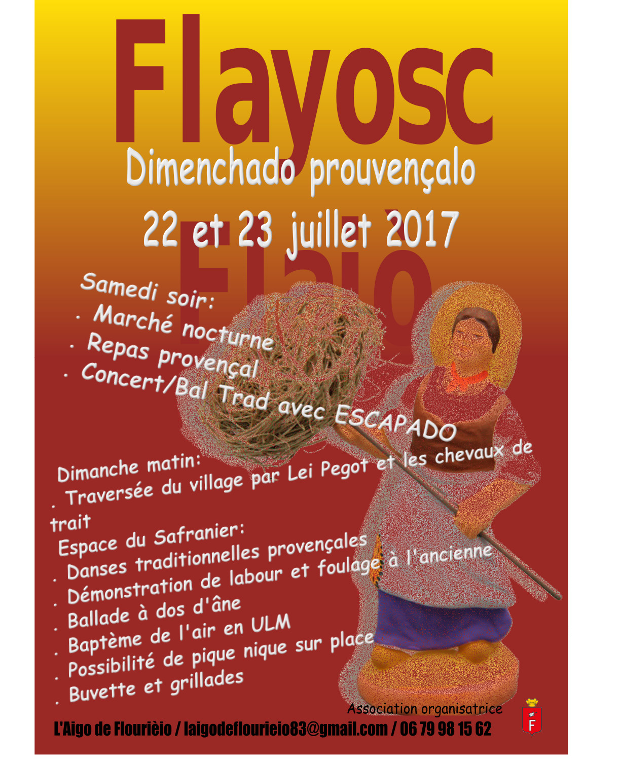 L’association Aigo de Flourieio organise un grand week-end provençal le 22 et 23 juillet 2017.