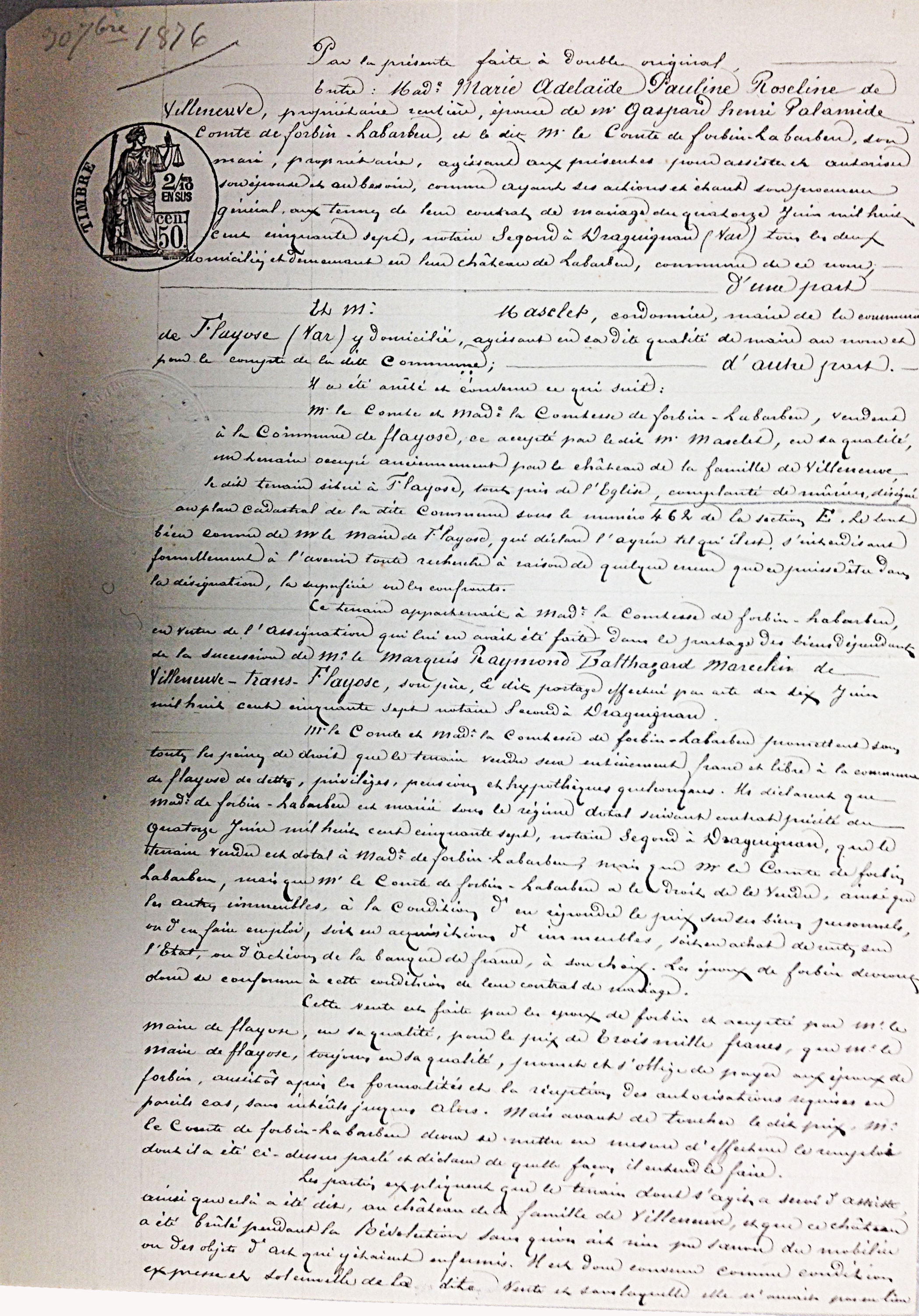 L’acte notarier entre le comte de Forbin et la mairie