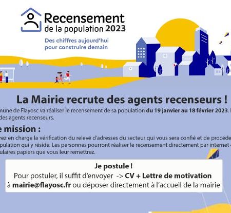 La mairie recrute des agents recenseurs 21 octobre 2022/dans A la une, Actualités, Non classé /par Jean-Michel HenryLire la suite