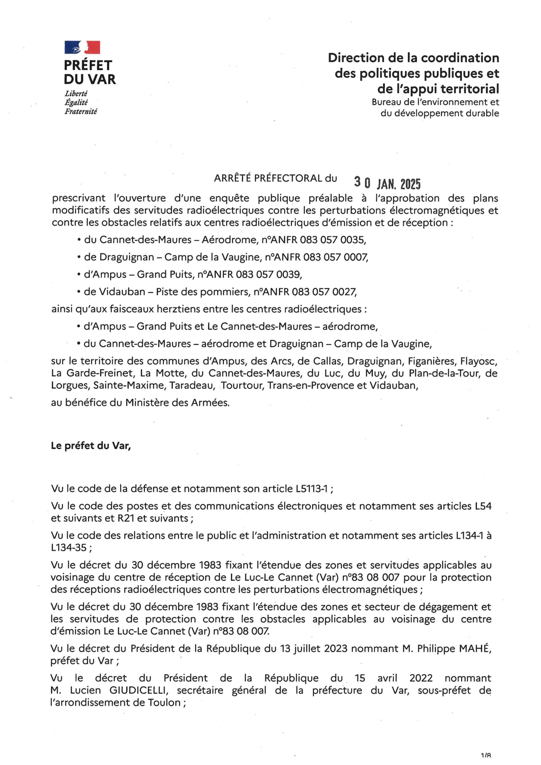 Par arrêté municipal n°2025/022 en date du 3 octobre 2025 le Maire de la commune de Flayosc a ordonné l’ouverture d’une