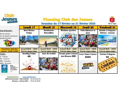 Pour toute information complémentaire, nous vous invitons à contacter le service jeunesse au 04.94.70.40.03 ou par mail à jeunesse@flayosc.fr