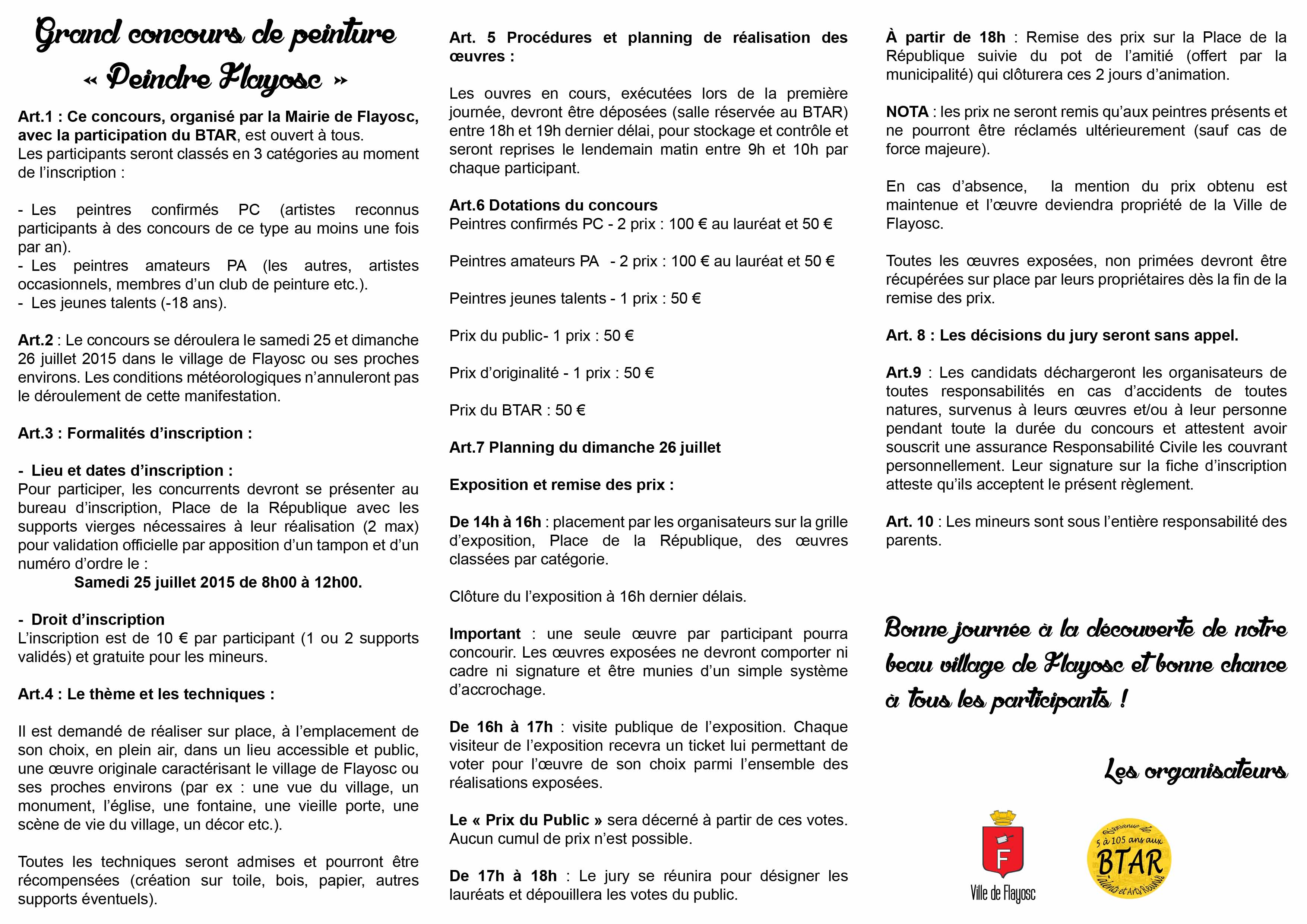 La commune, en partenariat avec le BTAR organise un grand concours de peinture, les 25 et 26 juillet prochains.